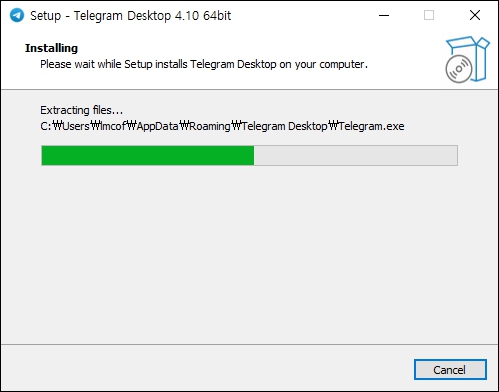 4. 이제 텔레그램 pc버전 설치가 진행 됩니다. 설치는 굉장히 빠르게 진행이 됩니다.