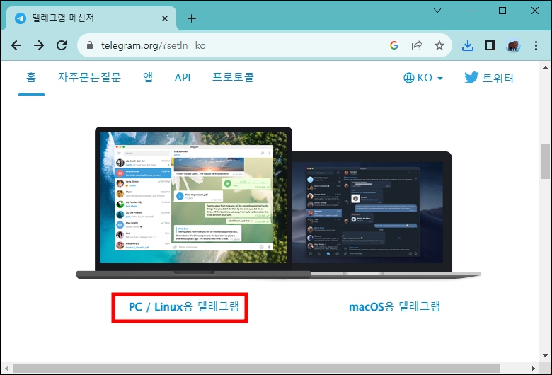 1. 아래의 텔레그램 pc버전 다운로드 공식 웹사이트에 접속 합니다.