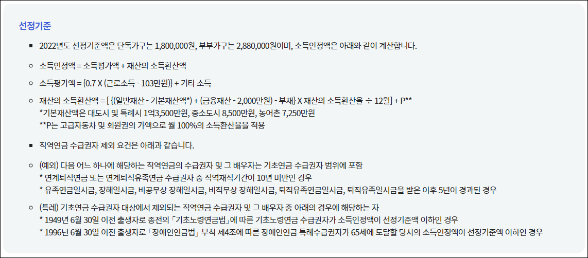 | 선정기준액 | 1,800,000원 | 2,880,000원 |