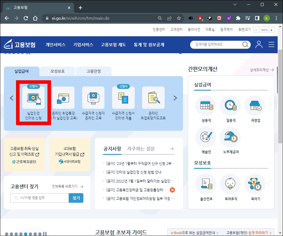 실업급여 신청은 아래의 링크에서 신청하실 수 있습니다. 금융인증서나 공동인증서가 미리 준비되어 있어야 신청이 가능 합니다.