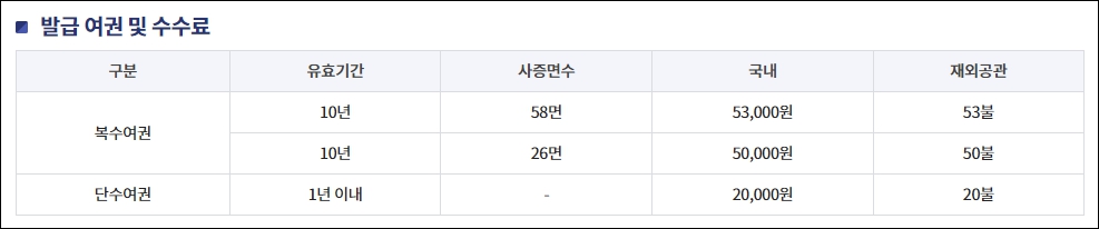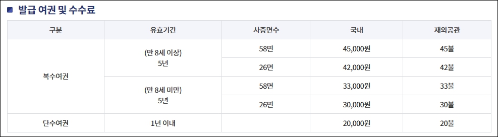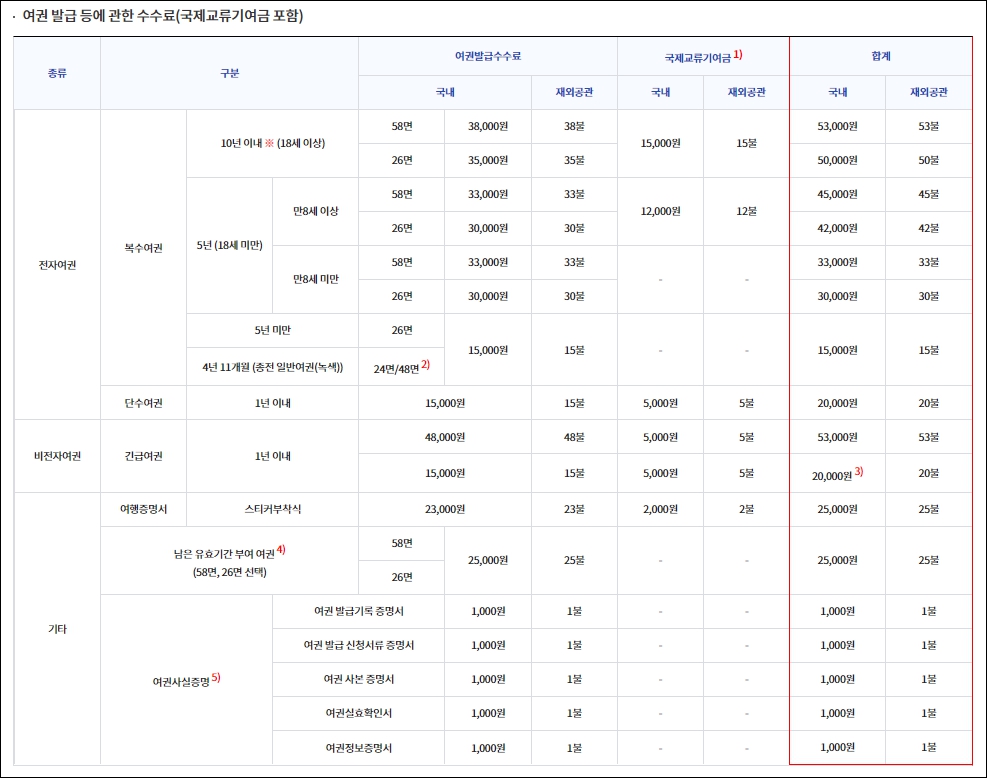참고로 병역의무자의 여권 발급 관련 수수료는 아래와 같습니다.