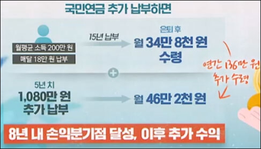 - 매년 약 200만원 이상의 국민연금을 추가수령.