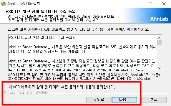 3) ASD 데이터 수집동의를 해주시고, 설치폴더가 나오면 수정 없이 그냥 설치를 진행 합니다.