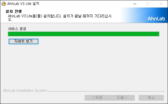 4) v3무료백신 설치는 약 30초 - 1분 정도의 시간이 소요 됩니다. 아래와 같은 화면이 나오면 조금만 기다려 주세요.
