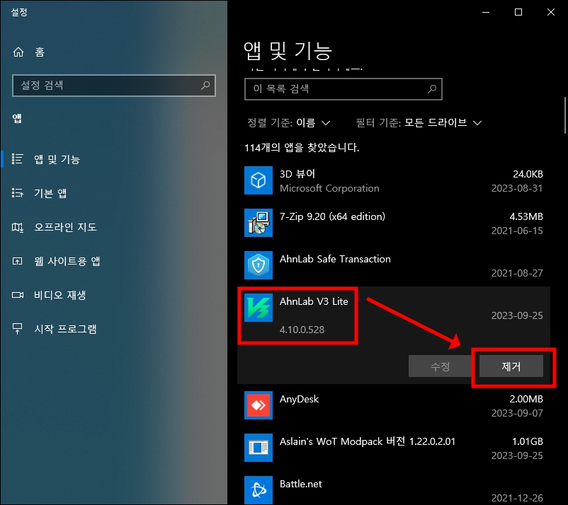 제가 사용중인 컴퓨터는 윈도우10을 기반으로 하고 있습니다. 윈도우11을 쓰시는 분들도 거의 동일하게 아래의 방법으로 v3 무료백신 설치 제거가 가능 합니다.