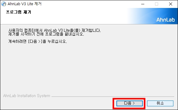 4. 프로그램 제거 화면이 나오면 다음 버튼을 눌러 주세요.