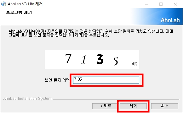 5. 프로그램 제거 보안문자를 화면에 보이는대로 입력 해주시고 제거를 눌러 주세요.