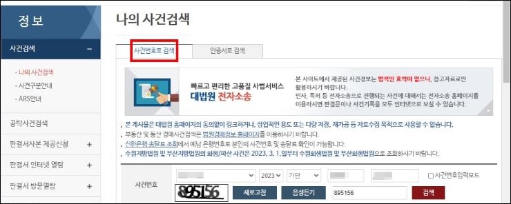 이제 사건번호를 모르실 경우에는 개인 인증서르 대법원 나의사건검색도 가능 합니다. 만약 본인이게 소가 걸려있다면 말이지요.